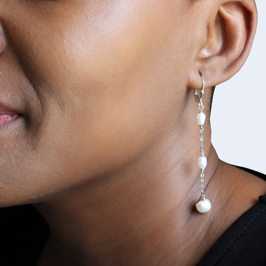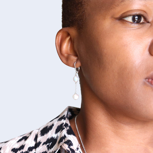 Cherish | Double pearl Drop Earrings in Sterling silver