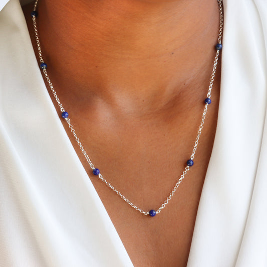 Adore | Lapis Lazuli Station Necklace in Sterling Silver