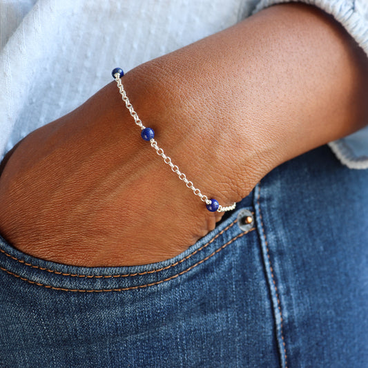 Adore | Lapis Lazuli Station Bracelet in Sterling Silver